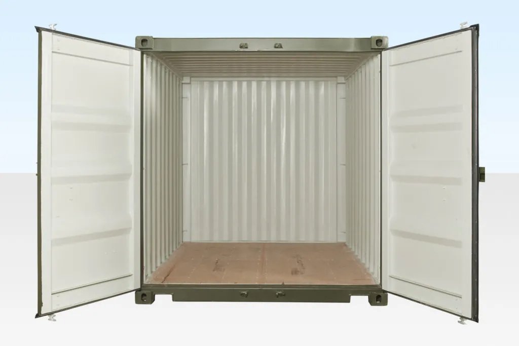 Our 10ft x 8ft Shipping Container in Green (RAL 6007) is the perfect compact storage solution for a wide variety of applications. Manufactured in China and used only once to transport cargo, these “One Trip” containers offer near-new quality at a significantly lower cost than UK- or EU-made alternatives.