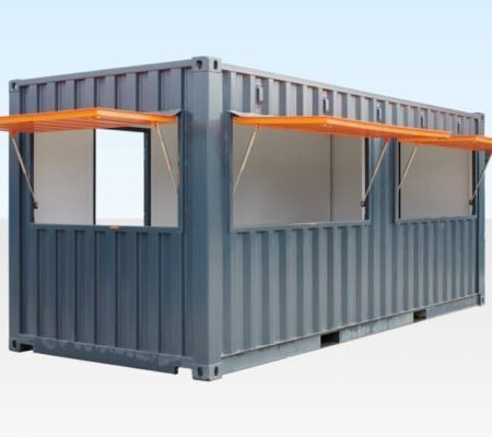 This 20ft Container Café is one of our most popular shipping container conversions. It is based on a standard one-trip 20ft x 8ft shipping container and has been converted by our specialist in-house team for use as a food or drinks serving unit.